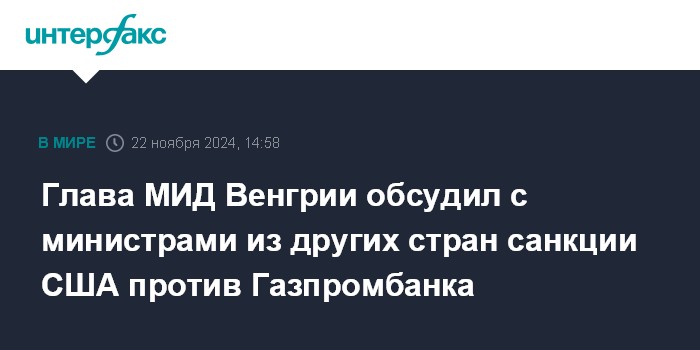 Глава МИД Венгрии обсудил с министрами из других стран санкции США против Газпромбанка