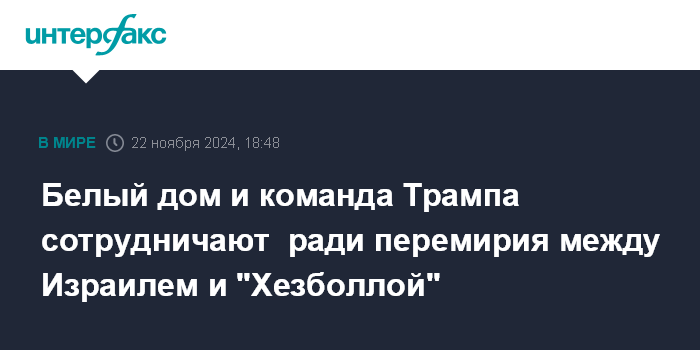 Ранее The Washington Post сообщило, что Израиль обсуждал с Трампом, как можно добиться перемирия с "Хезболлой" в Ливане. По данным газеты, 10 ноября министр по стратегическим вопросам Израиля Рон Дермер в ходе поездки в США, прежде чем отправиться в Белый дом, останавливался в имении Трампа Мар-а-Лаго.