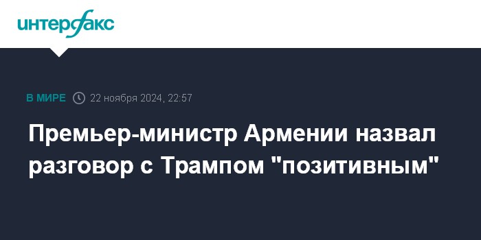Москва. 22 ноября. INTERFAX.RU - Премьер-министр Армении Никол Пашинян заявил, что его разговор с избранным президентом США Дональдом Трампом был "информативным и позитивным".