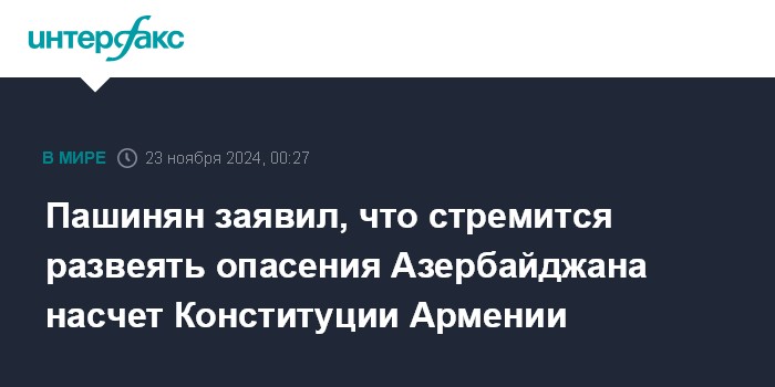 Пашинян заявил, что стремится развеять опасения Азербайджана насчет Конституции Армении
