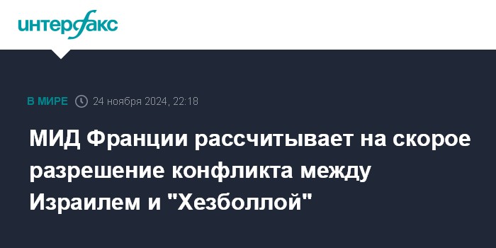 МИД Франции рассчитывает на скорое разрешение конфликта между Израилем и "Хезболлой"