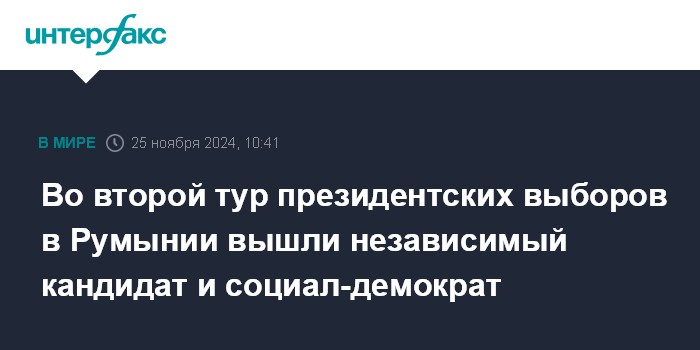 Во второй тур президентских выборов в Румынии вышли независимый кандидат и социал-демократ