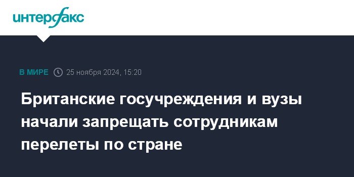 По ее сведениям, несколько госучреждений, университетов и местных советов ввели для своих сотрудников такой запрет или прописали железнодорожные переезды способом поездок в командировки по умолчанию. В частности, Национальная служба здравоохранения NHS England, крупнейший работодатель Англии, запретила в 2024 году перелеты в бизнес-целях 1,5 млн своих сотрудников. Летать им разрешено только в исключительных ситуациях или если перелет способствует экономии средств налогоплательщиков.
