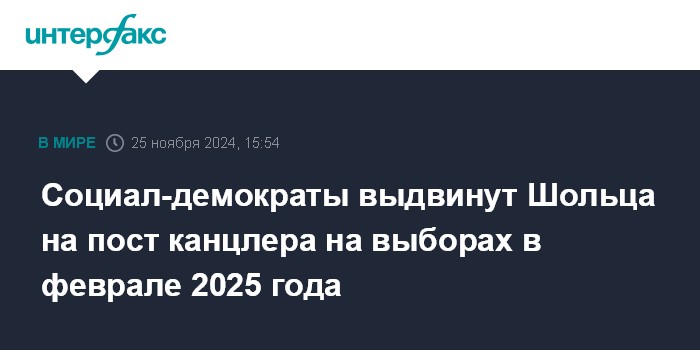 Социал-демократы выдвинут Шольца на пост канцлера на выборах в феврале 2025 года