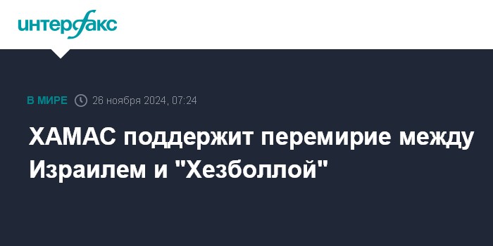 ХАМАС поддержит перемирие между Израилем и "Хезболлой"