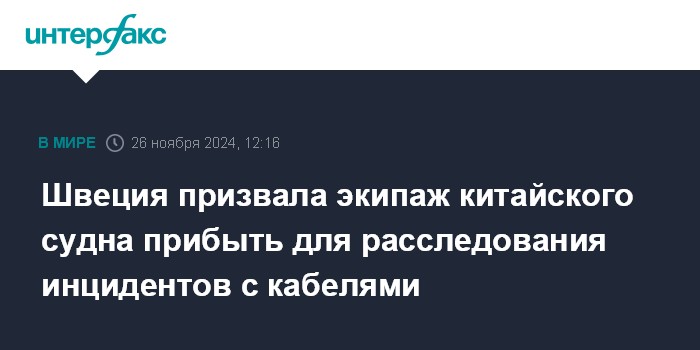 Швеция призвала экипаж китайского судна прибыть для расследования инцидентов с кабелями