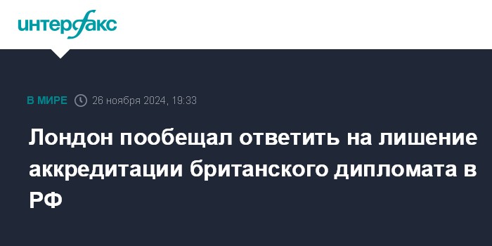 Москва. 26 ноября. INTERFAX.RU - В Лондоне пообещали, что примут меры в ответ на предписание своему дипломату покинуть РФ, сообщает BBC со ссылкой на представителя МИД страны.