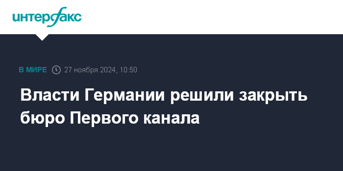 Москва. 27 ноября. INTERFAX.RU - Первый канал сообщил о решении немецких властей закрыть его бюро в Берлине.