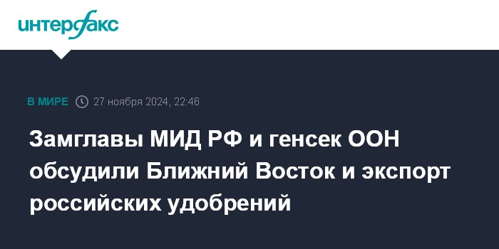 Замглавы МИД РФ и генсек ООН обсудили Ближний Восток и экспорт российских удобрений