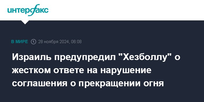 Израиль предупредил "Хезболлу" о жестком ответе на нарушение соглашения о прекращении огня