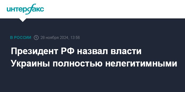 Москва. 28 ноября. INTERFAX.RU - Президент РФ Владимир Путин заявил, что власти в Киеве полностью нелегитимны, а потому не могут отдавать военным приказы.
