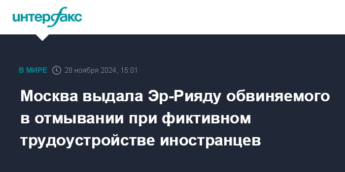 Москва выдала Эр-Рияду обвиняемого в отмывании при фиктивном трудоустройстве иностранцев