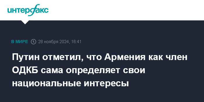 Путин отметил, что Армения как член ОДКБ сама определяет свои национальные интересы