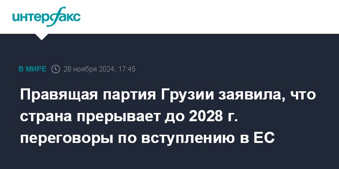 Правящая партия Грузии заявила, что страна прерывает до 2028 г. переговоры по вступлению в ЕС