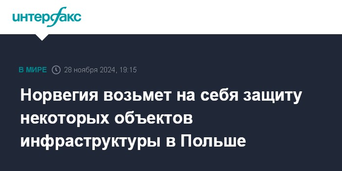 Москва. 28 ноября. INTERFAX.RU - Норвегия как член НАТО будет защищать некоторые объекты транспортно-логистической инфраструктуры в Польше, сообщил в четверг польский премьер-министр Дональд Туск.