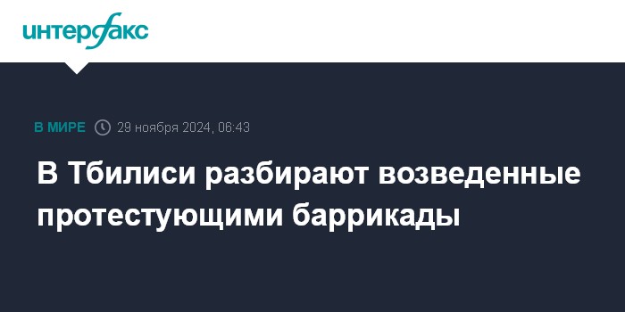 Москва. 29 ноября. INTERFAX.RU - В Тбилиси сотрудники городской службы благоустройства разбирают баррикады на проспекте Руставели, где в ночь на пятницу проходила акция протеста против решения правительства Грузии отложить переговоры о вступлении в Евросоюз.