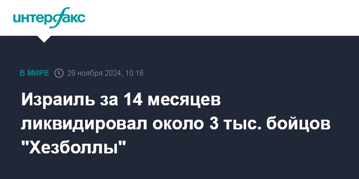 Израиль за 14 месяцев ликвидировал около 3 тыс. бойцов "Хезболлы"