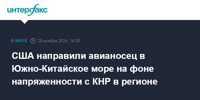 США направили авианосец в Южно-Китайское море на фоне напряженности с КНР в регионе
