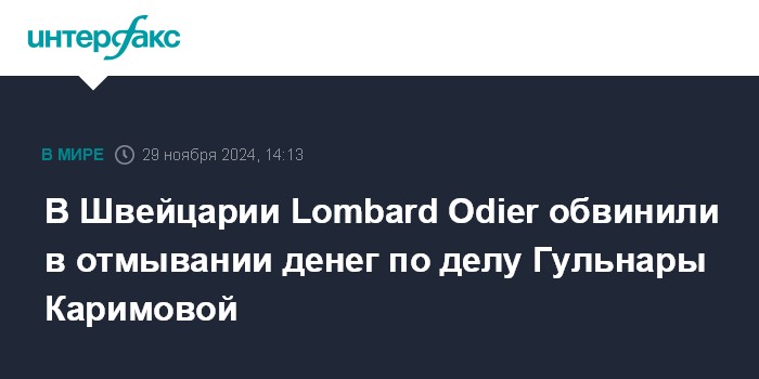 В Швейцарии Lombard Odier обвинили в отмывании денег по делу Гульнары Каримовой