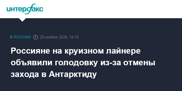 Москва. 29 ноября. INTERFAX.RU - Российские пассажиры круизного лайнера Diana компании Swan Hellenic объявили голодовку после того, как из-за отказа одного из двигателей были отменены запланированные по программе круиза заходы в Антарктиде, пишет The Times.