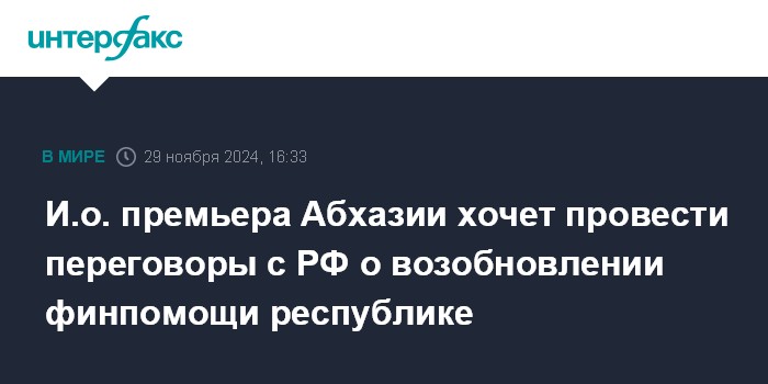 И.о. премьера Абхазии хочет провести переговоры с РФ о возобновлении финпомощи республике