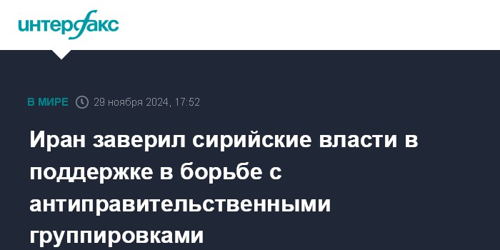 Москва. 29 ноября. INTERFAX.RU - Глава МИД Ирана Аббас Аракчи в пятницу в ходе телефонного разговора заверил своего сирийского коллегу Бассама ас-Сабага в поддержке Тегераном сирийского правительства на фоне атак отрядов антиправительственных группировок, сообщает агентство "Тасним".