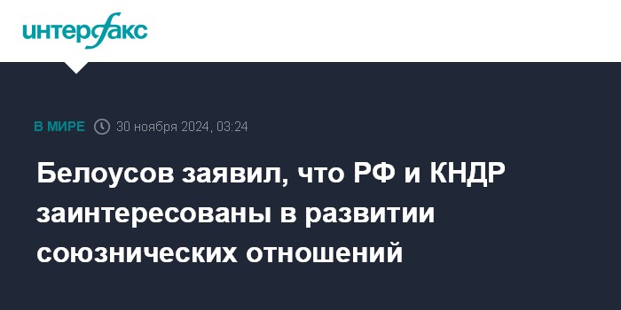 Белоусов заявил, что РФ и КНДР заинтересованы в развитии союзнических отношений