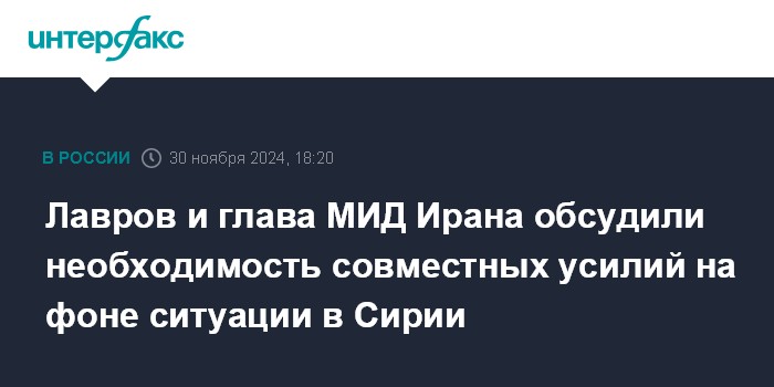 Москва. 30 ноября. INTERFAX.RU - МИД России сообщил, что в субботу по инициативе иранской стороны состоялся телефонный разговор министра иностранных дел РФ Сергея Лаврова с иранским коллегой Аббасом Аракчи.