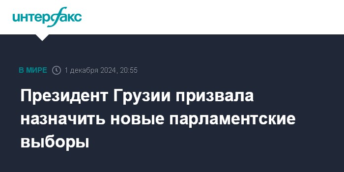 Москва. 1 декабря. INTERFAX.RU - Президент Грузии Саломе Зурабишвили заявляет, что для нормализации ситуации, связанной с массовыми протестами в Тбилиси, необходимо назначить новые парламентские выборы.