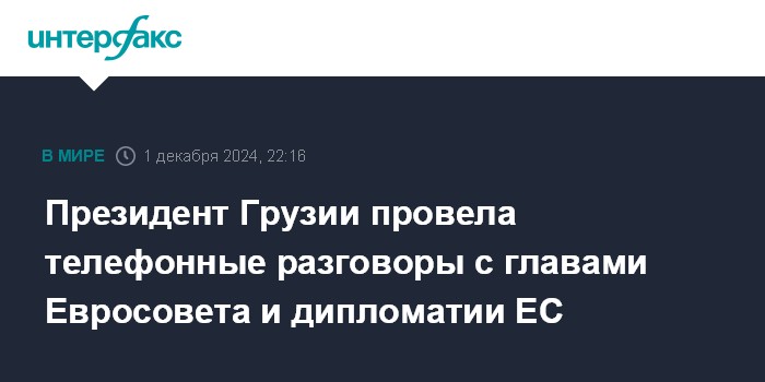 Москва. 1 декабря. INTERFAX.RU - Президент Грузии Саломе Зурабишвили в воскресенье провела телефонные разговоры с президентом Европейского совета Антониу Коштой и новым верховным представителем Евросоюза по иностранным делам и политике безопасности Каей Каллас.