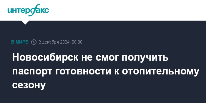 "Паспорт готовности муниципального образования к отопительном сезону выдается уполномоченным органом не позднее 15 ноября с учетом отсутствия замечаний при содержании и эксплуатации объектов ЖКХ. В связи с наличием свыше 50 нарушений городу Новосибирску паспорт готовности к отопительному сезону не выдан", - говорится в сообщении.