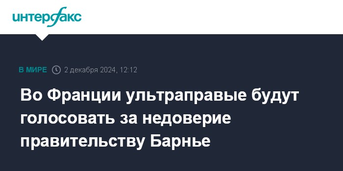 Во Франции ультраправые будут голосовать за недоверие правительству Барнье