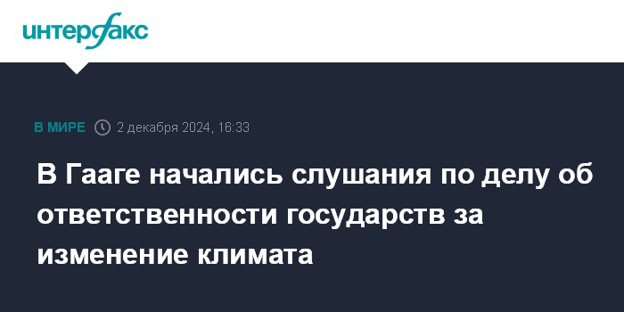 Москва. 2 декабря. INTERFAX.RU - В Международном суде ООН начались слушания об ответственности государств за климатические проблемы, сообщает AP.