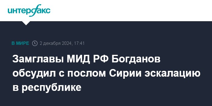 Замглавы МИД РФ Богданов обсудил с послом Сирии эскалацию в республике