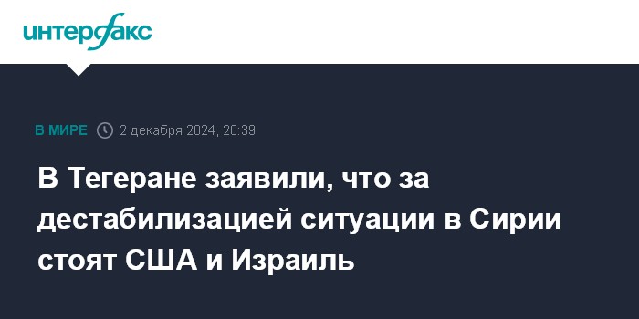 В Тегеране заявили, что за дестабилизацией ситуации в Сирии стоят США и Израиль
