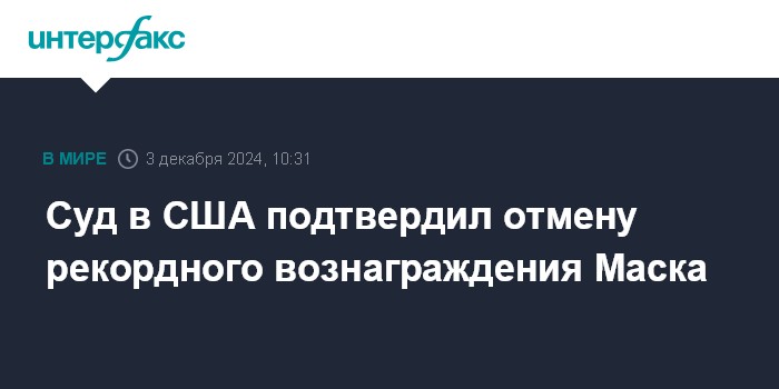 Суд в США подтвердил отмену рекордного вознаграждения Маска