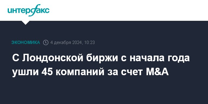 С Лондонской биржи с начала года ушли 45 компаний за счет M&A