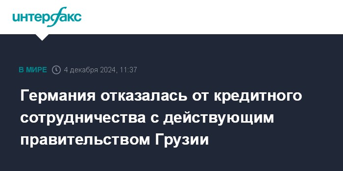 Москва. 4 декабря. INTERFAX.RU - Германия отказалась от предоставления на государственном уровне кредитной поддержки Грузии по политическим мотивам, сообщила в соцсети министр по вопросам экономического сотрудничества ФРГ Свенья Шульце.