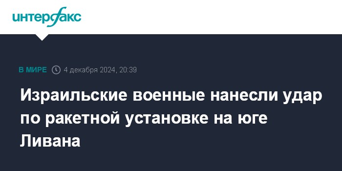 Москва. 4 декабря. INTERFAX.RU - Командовании Армии обороны Израиля (ЦАХАЛ) заявило, что израильская авиация атаковала в южном Ливане ракетную установку, присутствие которой нарушало режим прекращения огня между Израилем и движением "Хезболла".