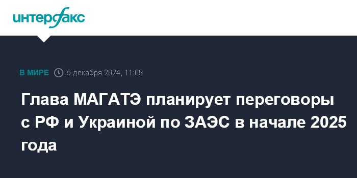 Глава МАГАТЭ планирует переговоры с РФ и Украиной по ЗАЭС в начале 2025 года