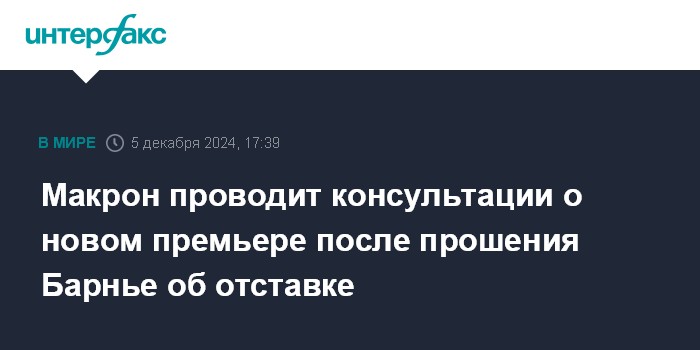 Макрон проводит консультации о новом премьере после прошения Барнье об отставке