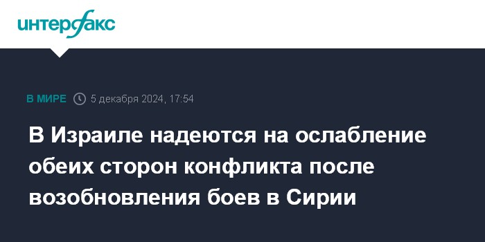 В Израиле надеются на ослабление обеих сторон конфликта после возобновления боев в Сирии