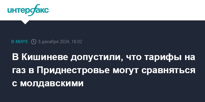 В Кишиневе допустили, что тарифы на газ в Приднестровье могут сравняться с молдавскими