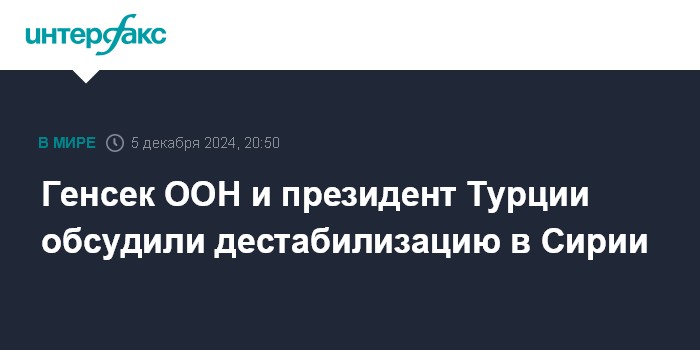 Генсек ООН и президент Турции обсудили дестабилизацию в Сирии