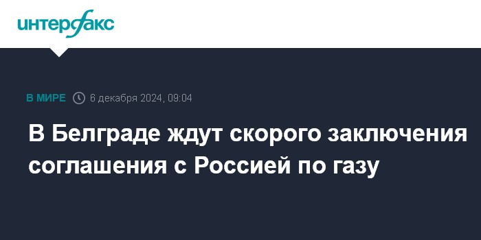 В Белграде ждут скорого заключения соглашения с Россией по газу