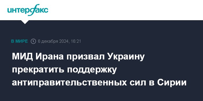 "Помощник главы МИД Ирана Моджтаба Дамирчилу ссылается на данные об украинской поддержке террористических группировок в Сирии и призывает немедленно прекратить эти действия", - пишет агентство.