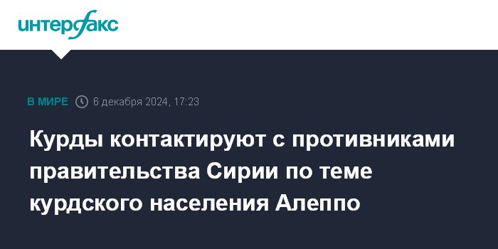 Курды контактируют с противниками правительства Сирии по теме курдского населения Алеппо