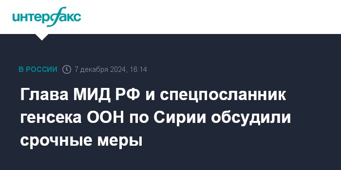 Глава МИД РФ и спецпосланник генсека ООН по Сирии обсудили срочные меры