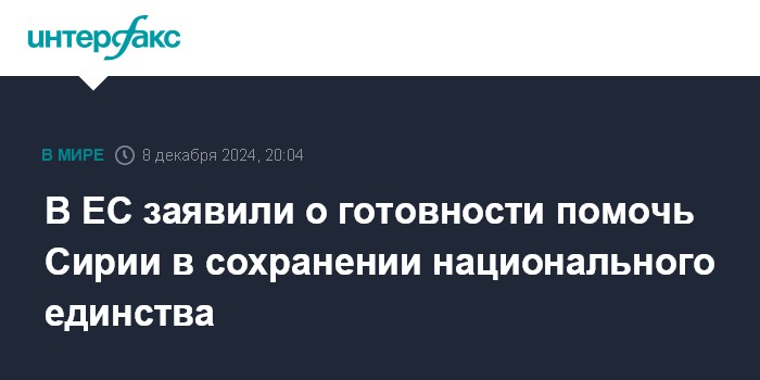 В ЕС заявили о готовности помочь Сирии в сохранении национального единства