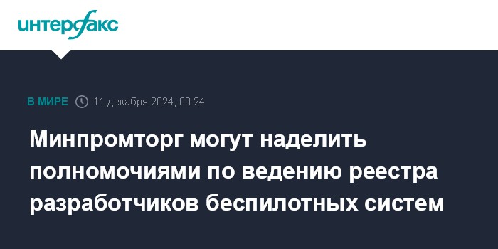 Минпромторг могут наделить полномочиями по ведению реестра разработчиков беспилотных систем